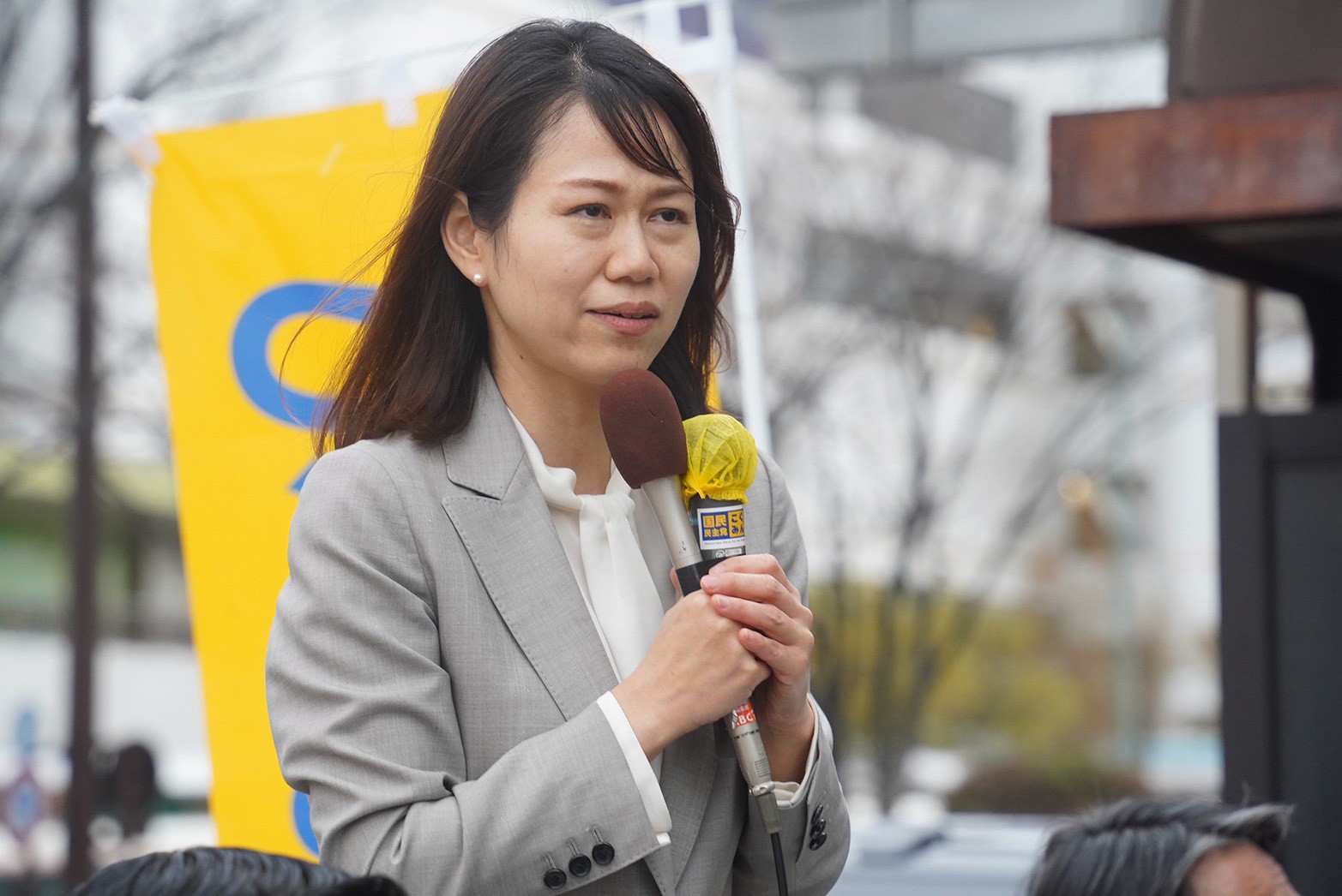 続いて榛葉幹事長は、「今の国民民主党は2020年9月に15人でスタートをした。その時の一人である岸本周平さんを送り出したのがここ和歌山1区である」と述べ、「岸本さんが長年訴え続けていたのが『ふつうの人から豊かになろう』である。国の懐を増やすのではなく、国民一人ひとりの手取りを増やす政策を実現していかなければならない」と訴えた。その上で、「林議員はこども3人を育てる普通の主婦からこの世界に入った。毎日スーパーの買い物で悩む庶民の気持ちが誰よりも分かる実直な人である」と聴衆に対して、林議員を紹介した。
