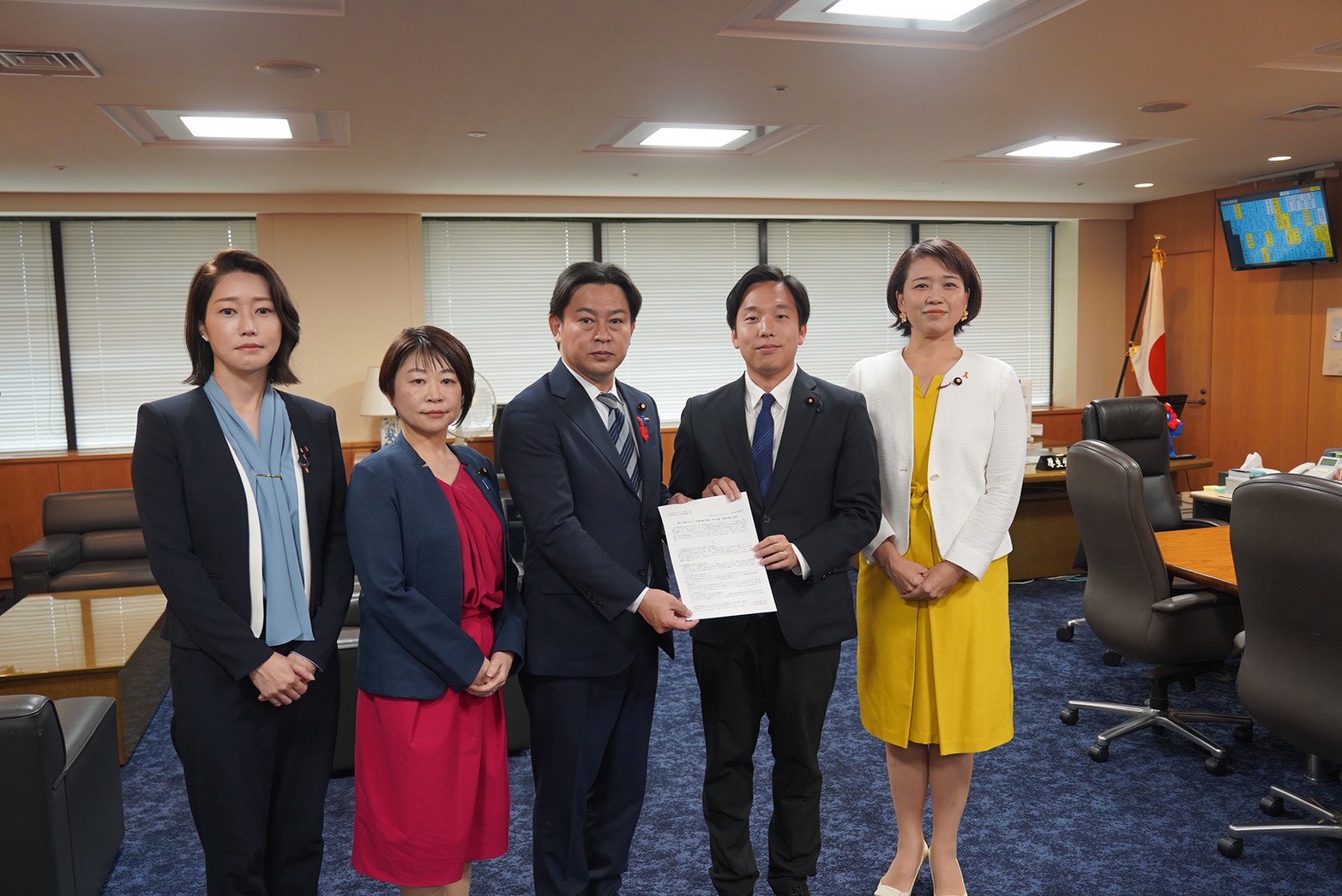 伊藤孝恵子ども・子育て・若者政策調査会会長(参議院議員/愛知県)、田村まみ調査会副会長(参議院議員/全国比例)、森ようすけ調査会事務局長(衆議院議員/東京13区)、牛田茉友調査会事務局次長(参議院議員/東京都)は7日、「障がい福祉における『18歳の壁』対策と『学びの場』の確保に関する提言」について、福岡資麿厚生労働大臣へ申し入れを行った。