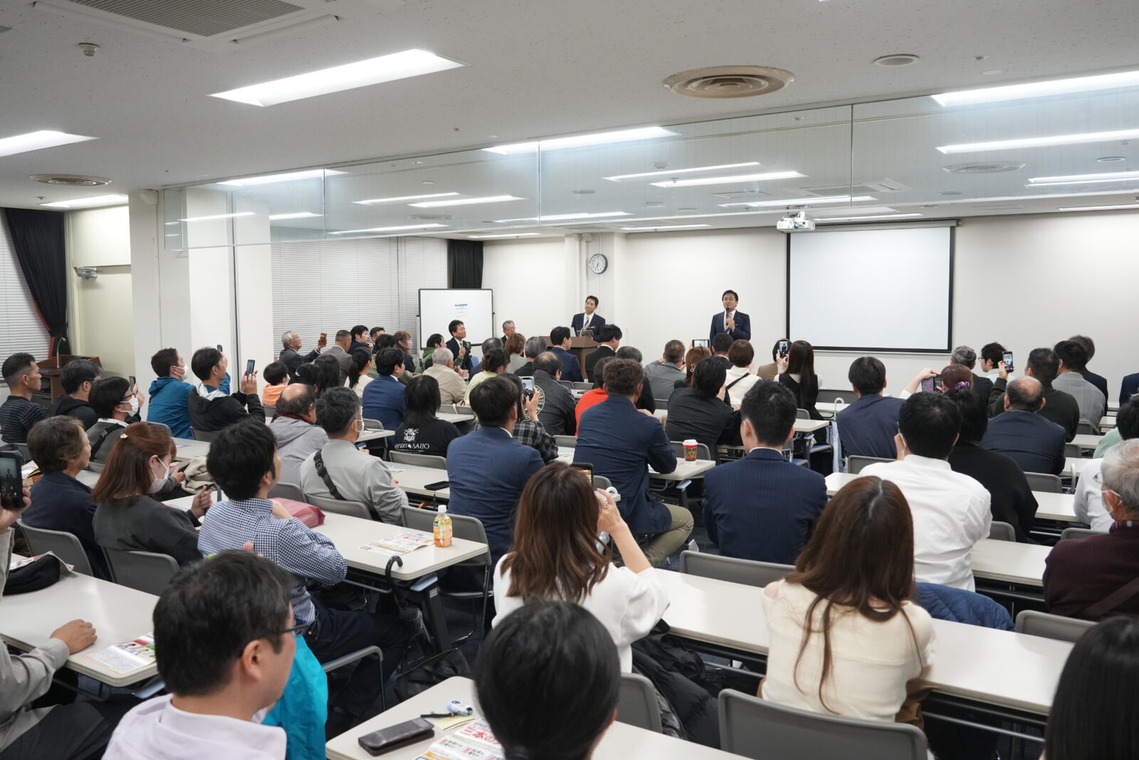続いて開かれた候補者募集説明会では、玉木代表が選挙に向けた心構えに加え、県内で特に立候補してほしい選挙区などを伝えた。また、田中県連会長が公認までの流れや選挙資金などのサポート内容を説明し、参加者らの質問に答えた。