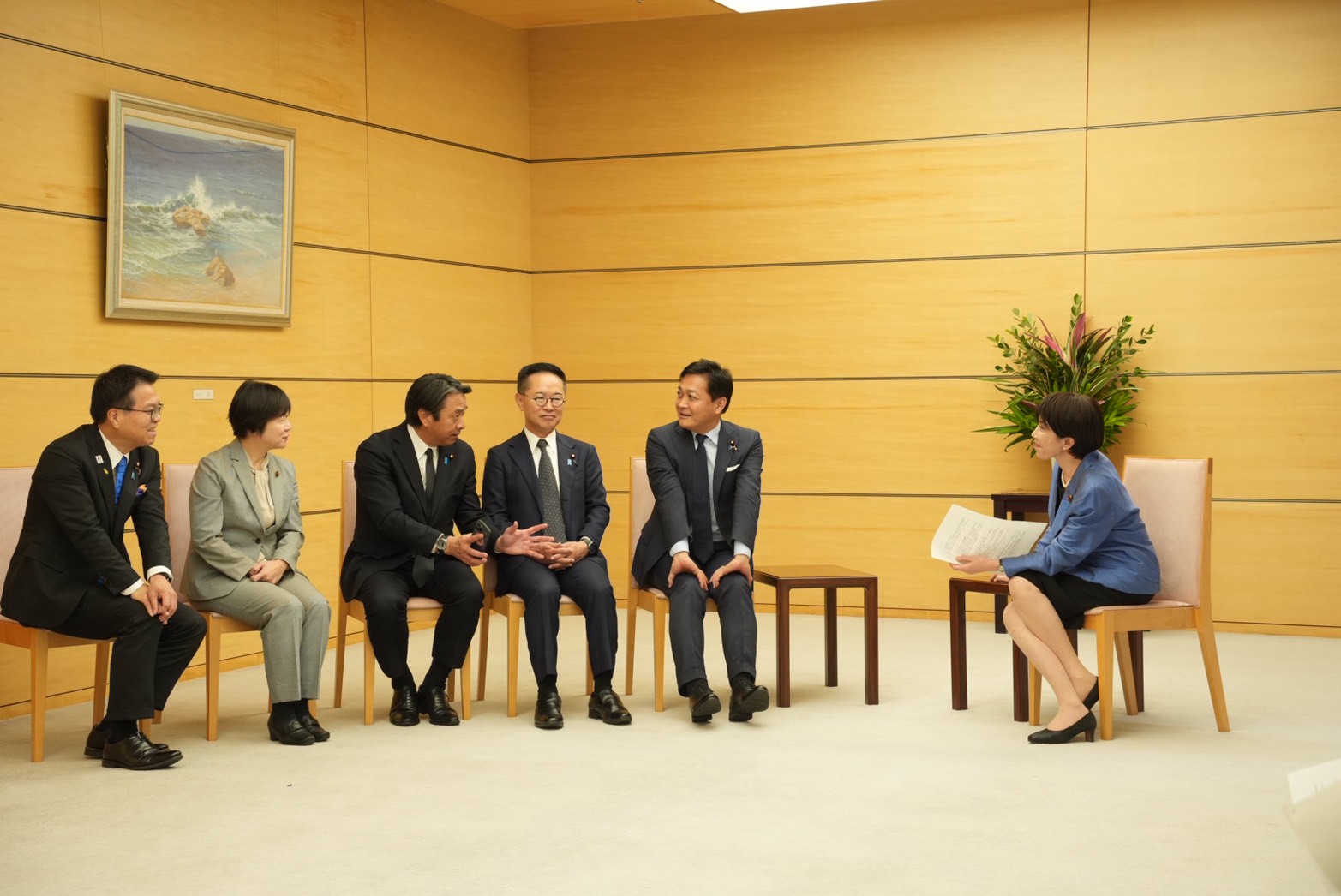 申し入れには玉木代表の他、古川元久代表代行(衆議院議員/愛知2区)、榛葉賀津也幹事長(参議院議員/静岡県)、舟山康江参議院議員会長(参議院議員/山形県)、浜口誠政調会長(参議院議員/全国比例)が参加した。