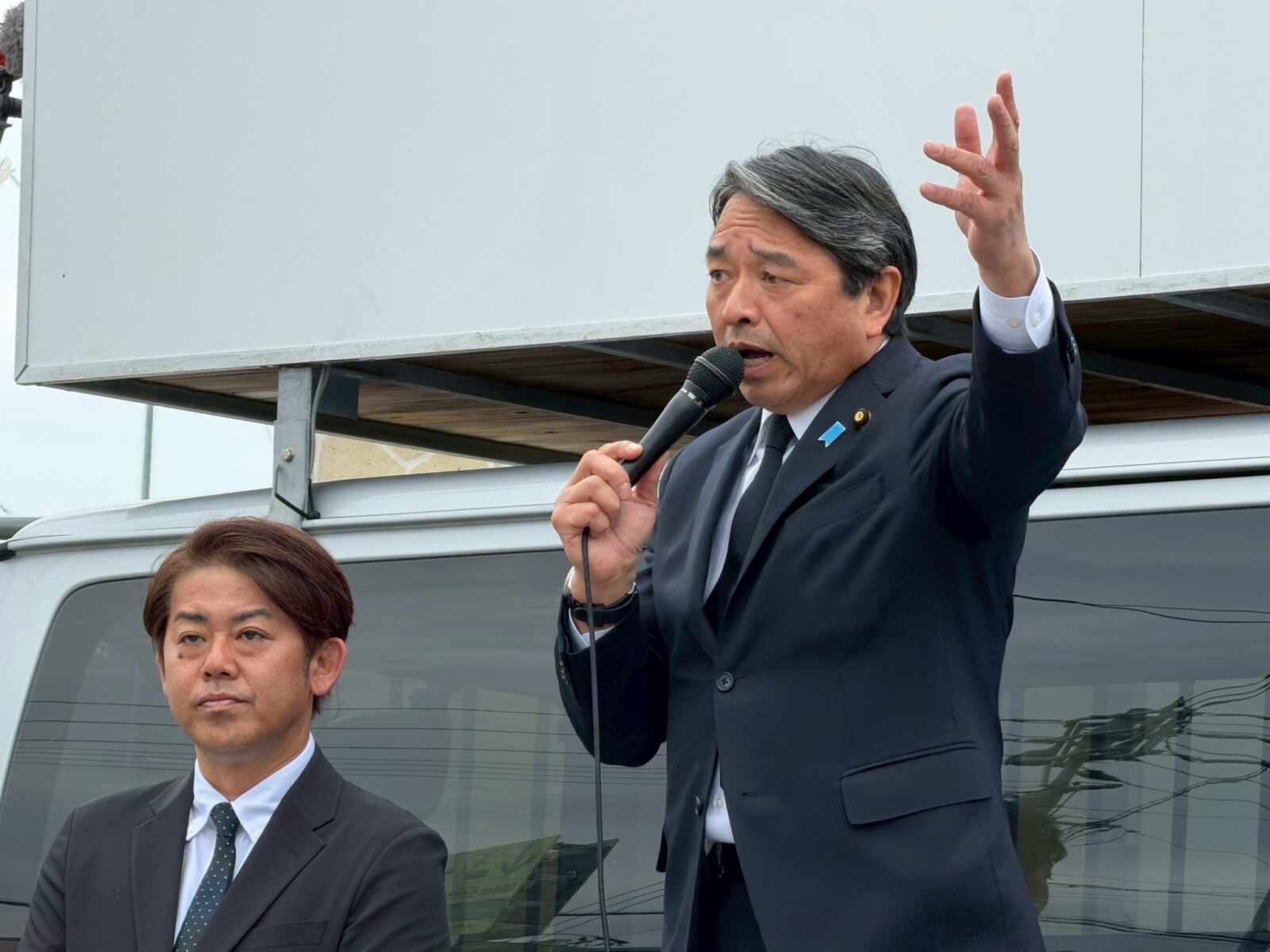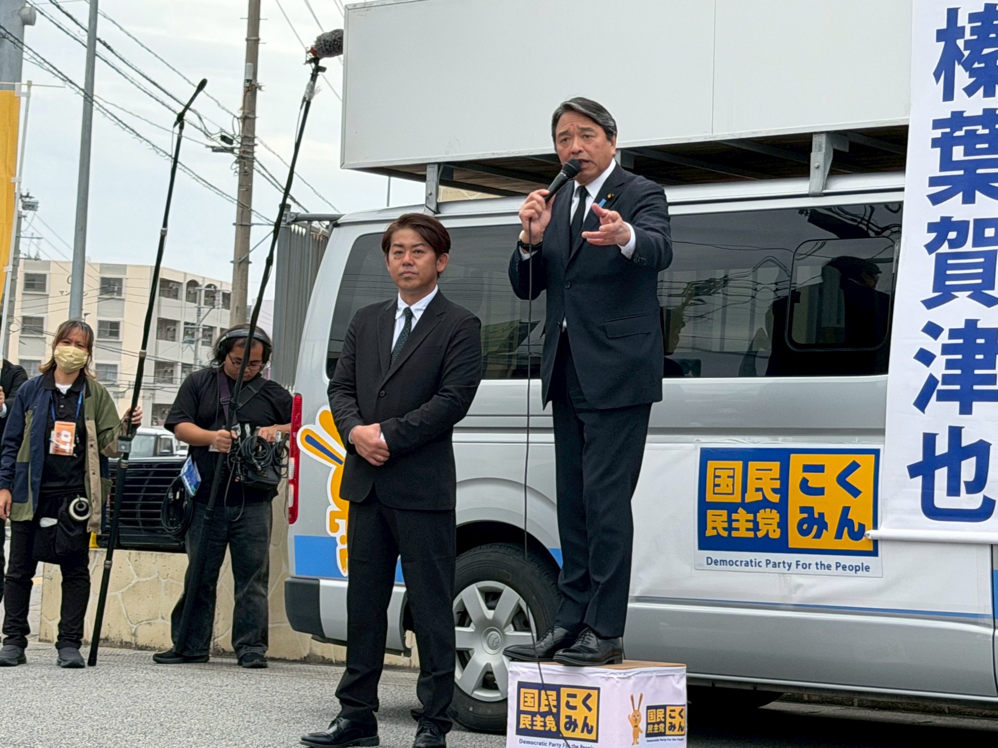 榛葉賀津也幹事長(参議院議員/静岡県)は26日、豊見城市役所前にて、さきえだ裕次 公認候補予定者(沖縄4区)とともに街頭演説を行った。