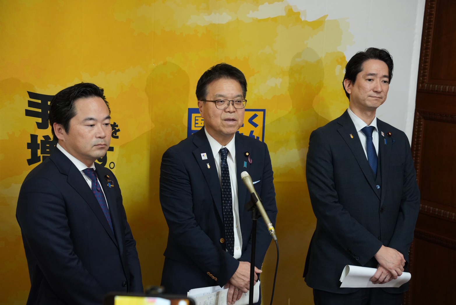 提出後記者団の取材に応じた、浜口誠政調会長(参議院議員/全国比例)は、「参議院選挙で公約として掲げた空室税をこの臨時会において提出できたということは大変意義がある。都市部における住宅事情の改善に資する法案であり、他党にも呼び掛け成立に向けて取り組んでいきたい」と発言した。
