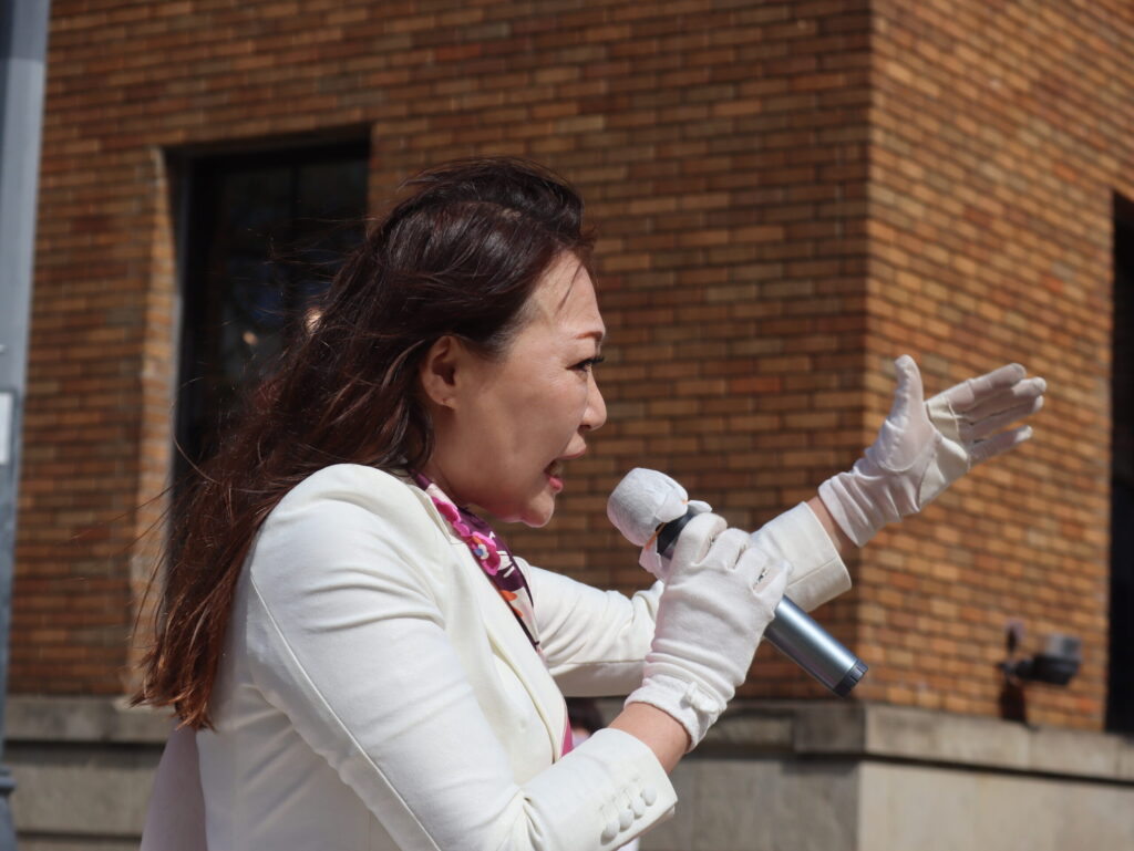 続いてマイクを握った佐々木候補は「私はかつてマレーシアで働いていた。そのときは物価がとても安かったが、その後東南アジアはどんどん成長し、日本に追いついてしまった。今では優秀な人がどんどん外資系企業に行ってしまうが、私は日本のために働きたいと思い、日本の企業に帰ってきた」と経歴を紹介。「今まで企業で教育、医療、福祉のITC化に携わってきた経験を生かし、行政のデジタル化に取り組みつつ、一人ひとりに目の行き届く福祉政策に力を入れていく。横浜市民が安心して暮らせる社会をつくっていきたい」と意気込みを述べた。