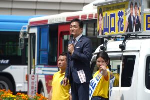 【都議選(練馬区)】「『誰にも言えない』を見捨てない東京へ」山口花都議候補が玉木代表と練馬駅で演説