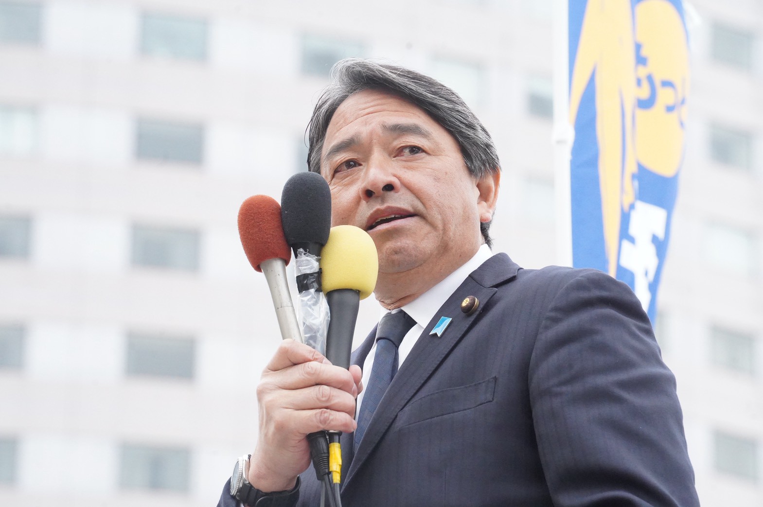 榛葉賀津也幹事長(参議院議員/静岡県)は3日、「おだけかい候補」(石川1区)の応援で金沢駅を訪れた。