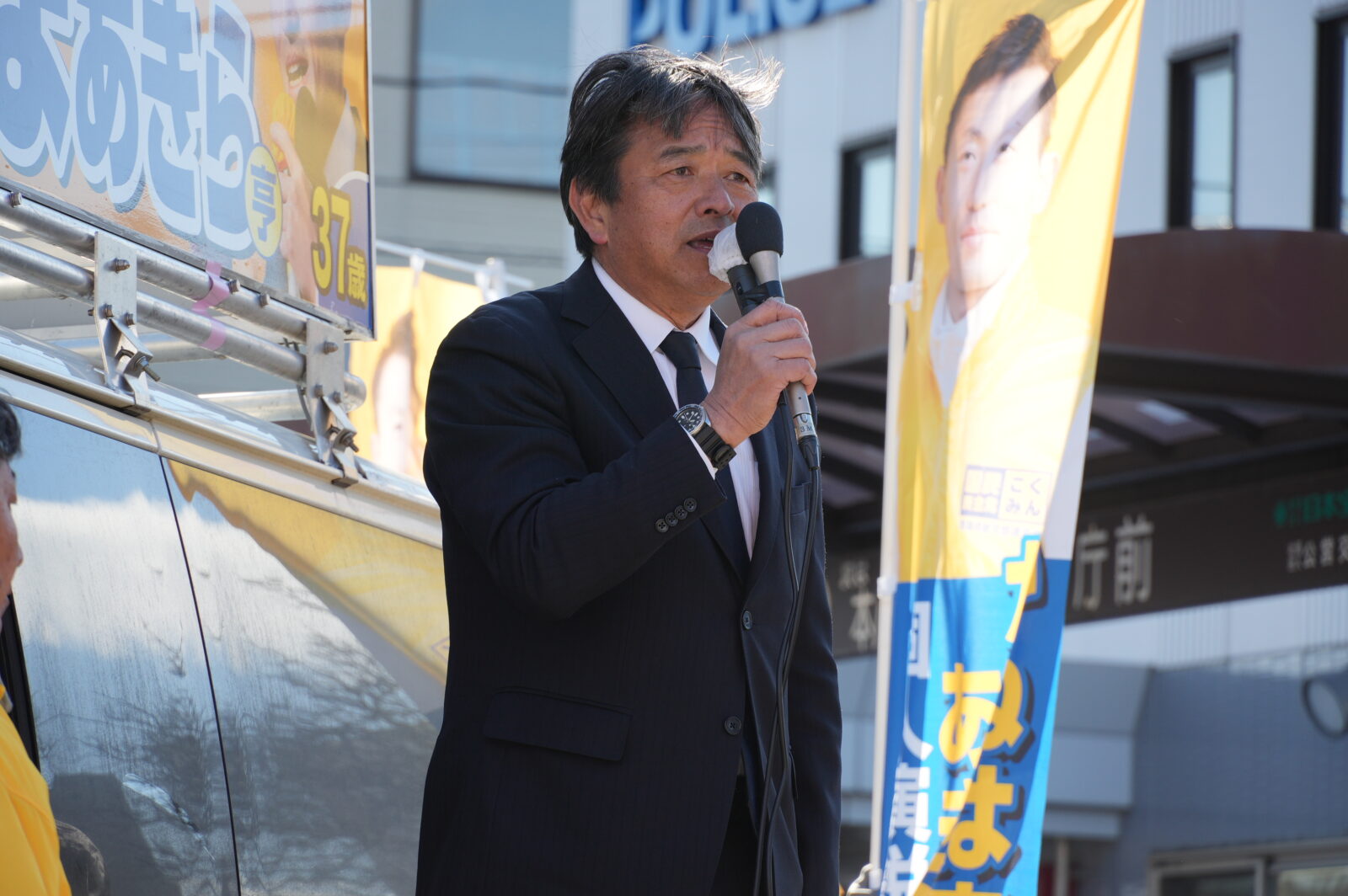 かねはまあきら候補(青森2区)は2月4日(水)、八戸市役所前で街頭演説会を開催、榛葉幹事長が応援に駆け付けた。