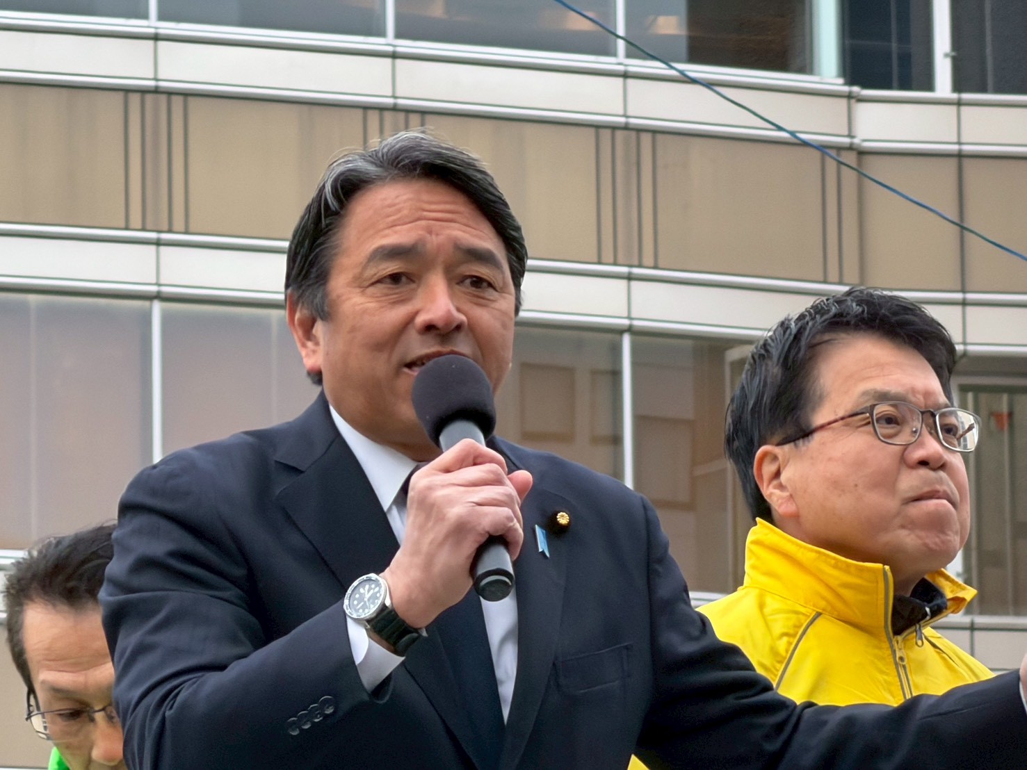 榛葉賀津也幹事長(参議院議員/静岡県)は7日、「丹野みどり候補」(愛知11区)の応援で名鉄豊田市駅を訪れた。
