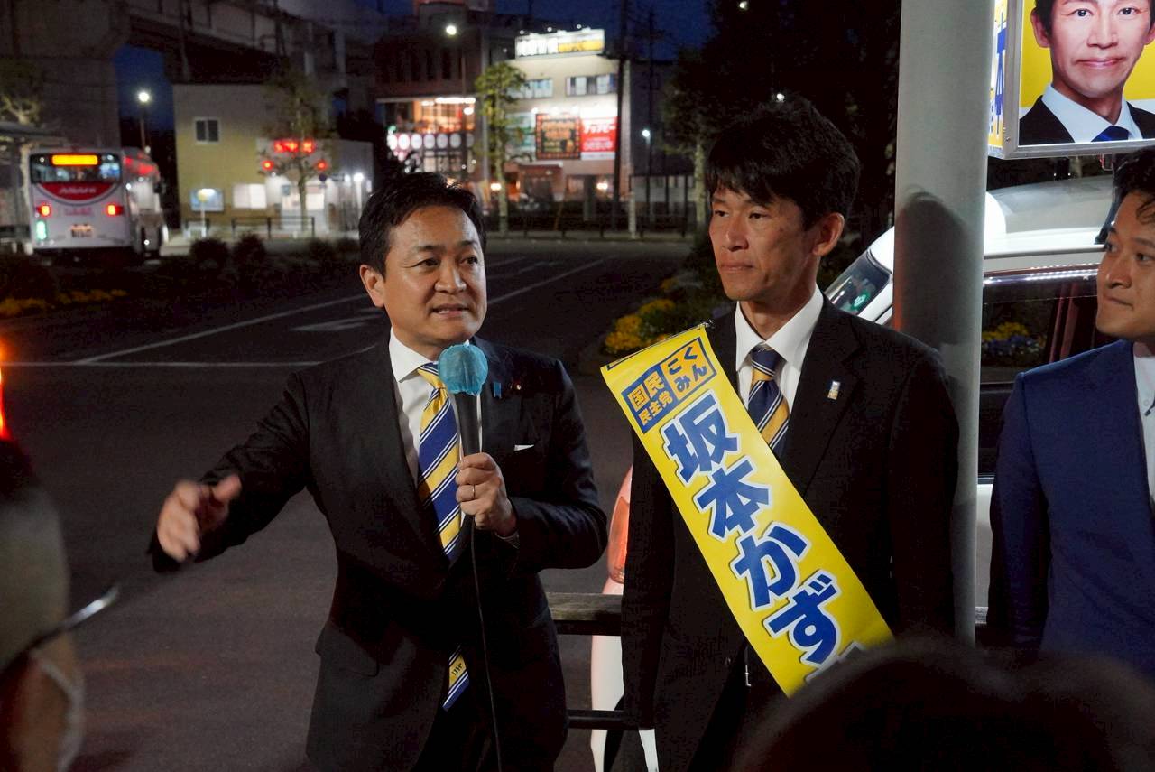 【久喜市議選】「市政のプロとして、弱い人の視点に立った政策を進める」坂本かずひさ候補と玉木代表が街頭演説