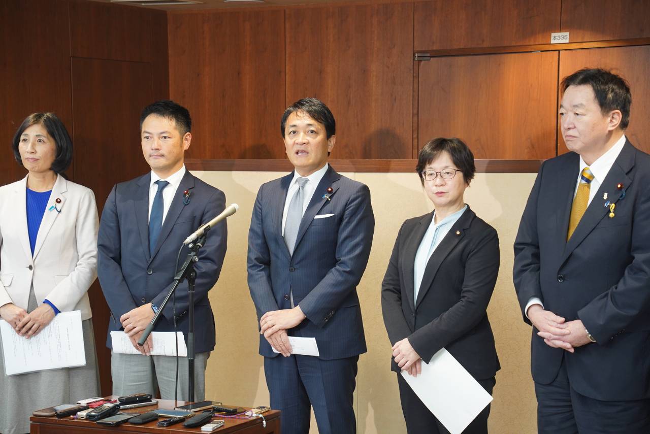 申し入れ後、記者団の取材に応じた玉木代表は「まず原因究明をしないと対策も打てない。早急に原因究明を行って支援につなげていくことが必要だ。また当面の資金繰り支援が最も重要で、スピーディーな支援を行っていただくよう求めた」と述べた。